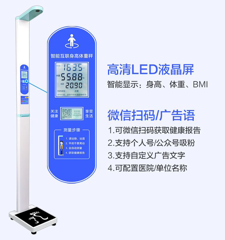 上禾SH-201智能雙屏身高體重測量儀,適合90%以上的春季體檢使用場景,雙屏顯示、可折疊、可設置您的專屬宣傳語、全自動測量、語音播報、數(shù)據(jù)傳輸?shù)龋胍墓δ?,它都有?/p>
